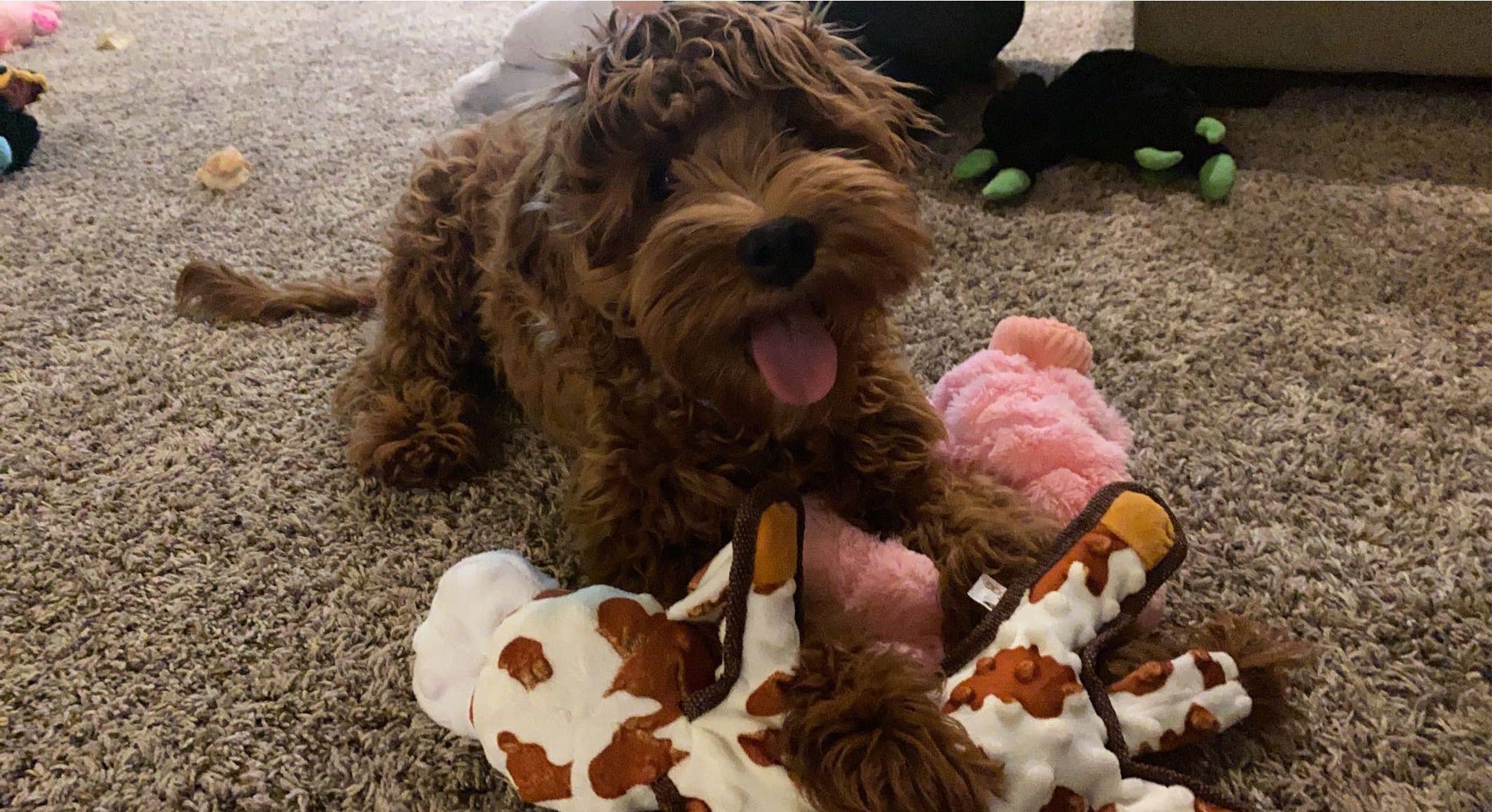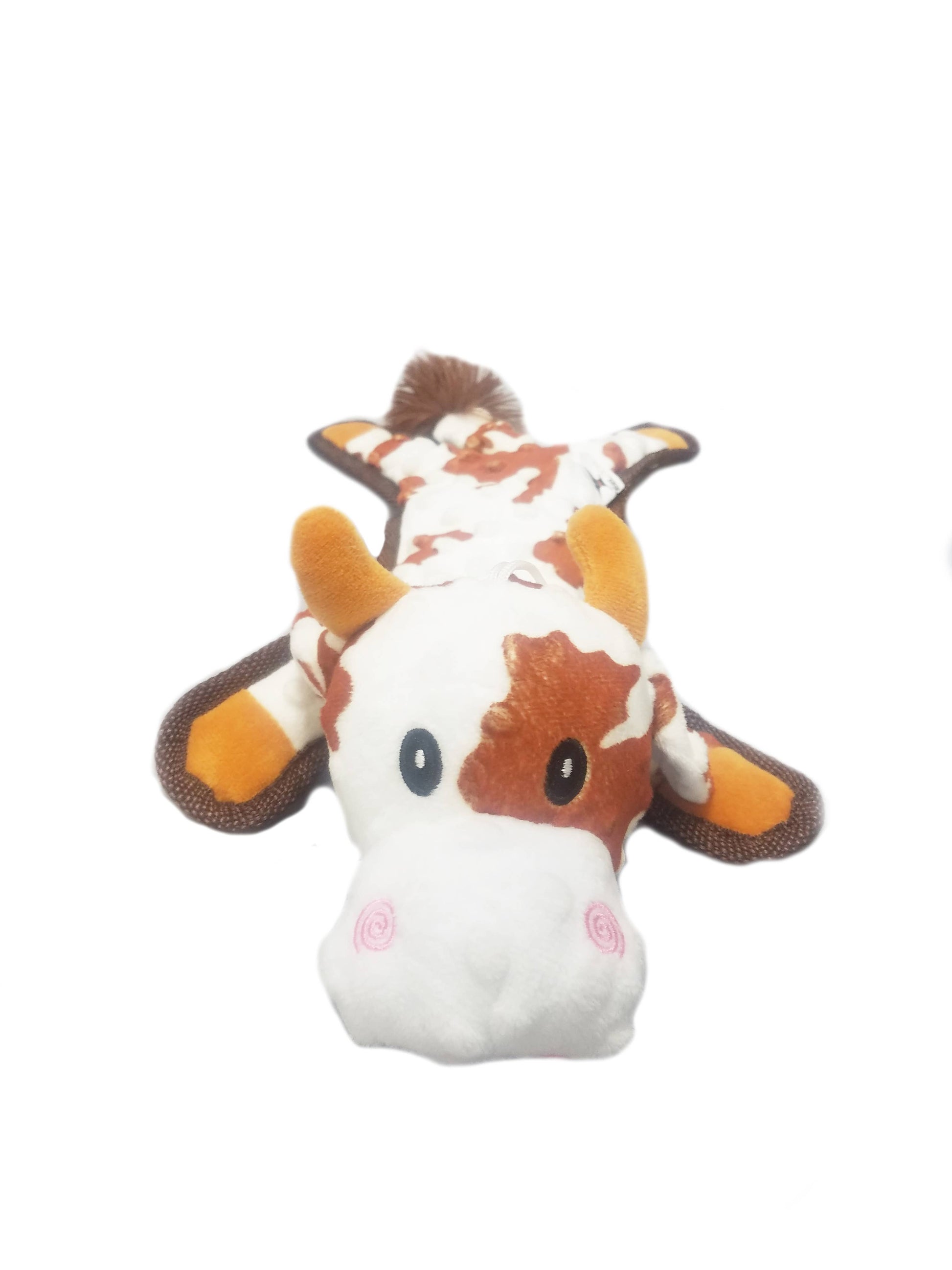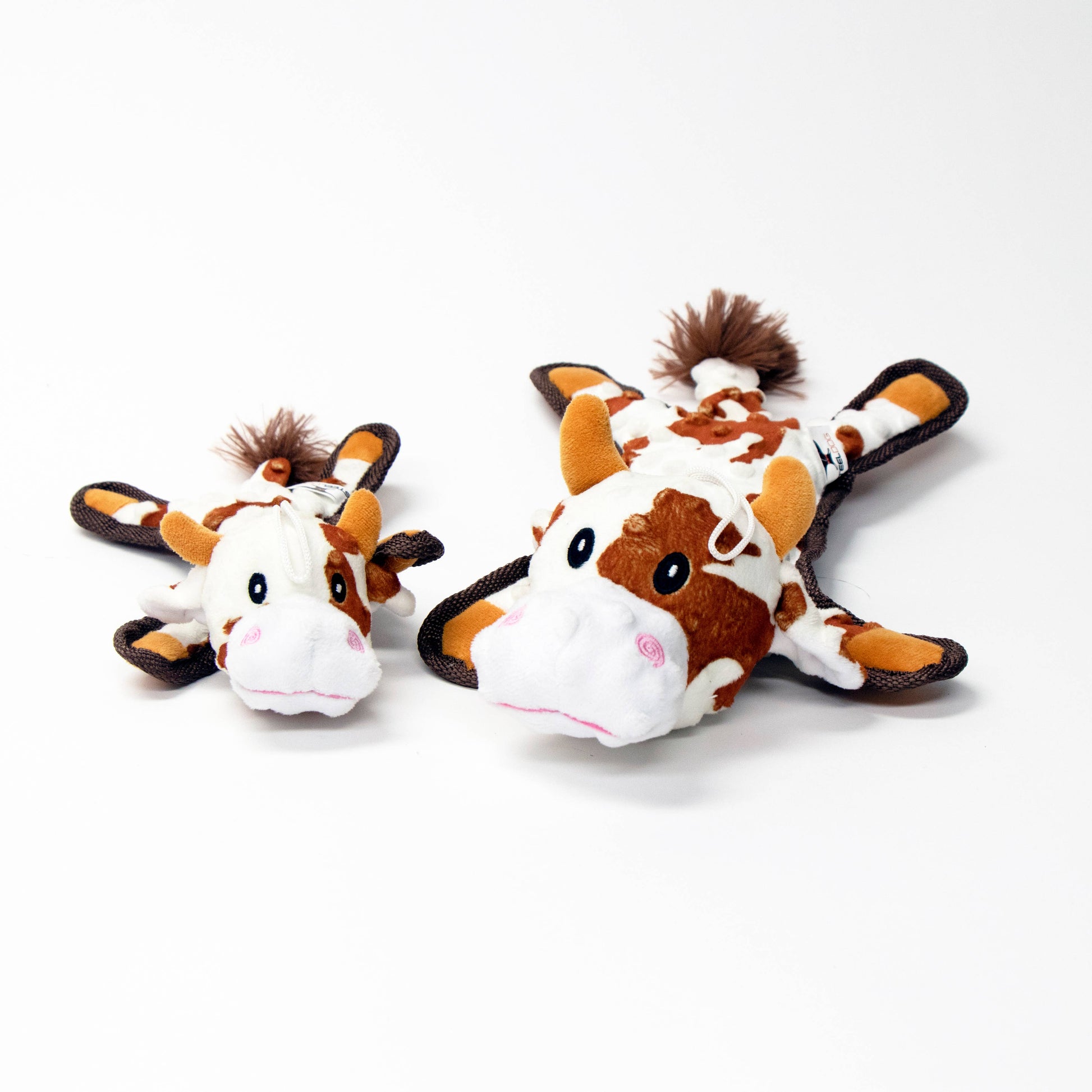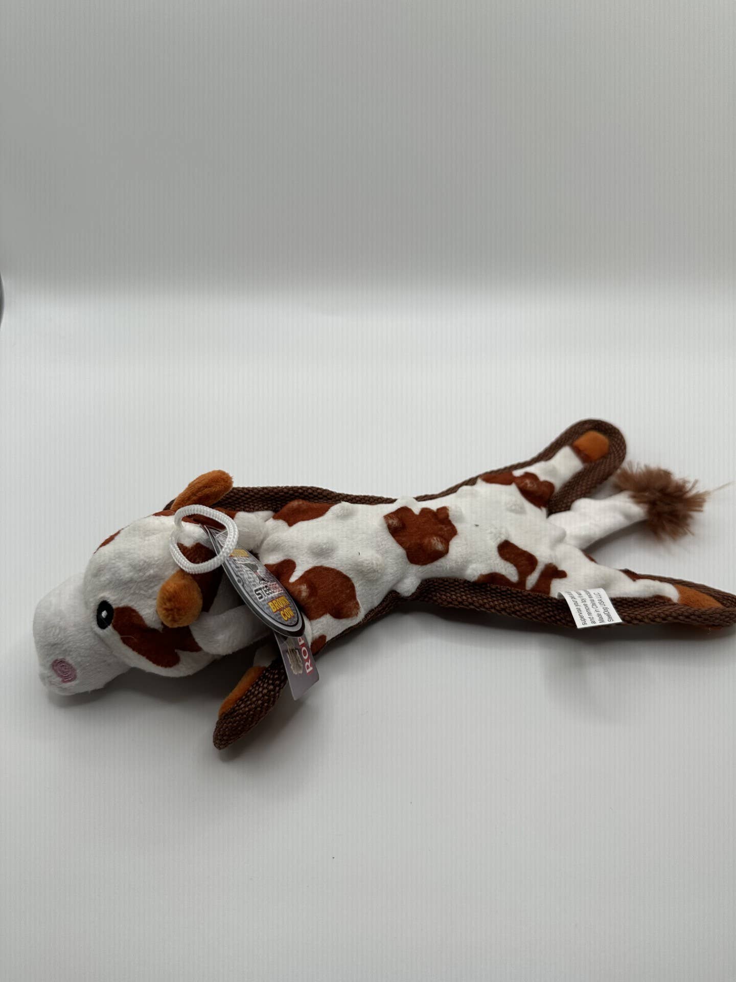 This may be the smaller version of our bumpie brown cow, but he is big fun! Just the right size for the little guy who likes to play hard too. same features as our bumpies: tennis ball head, rope body, crinkled paws, and a squeaker, just fun-sized! Bumpies have a Moderate chew-o-meter rating. Even if they do succeed in tearing through the heavy-duty seams, two more toys are ready to go!