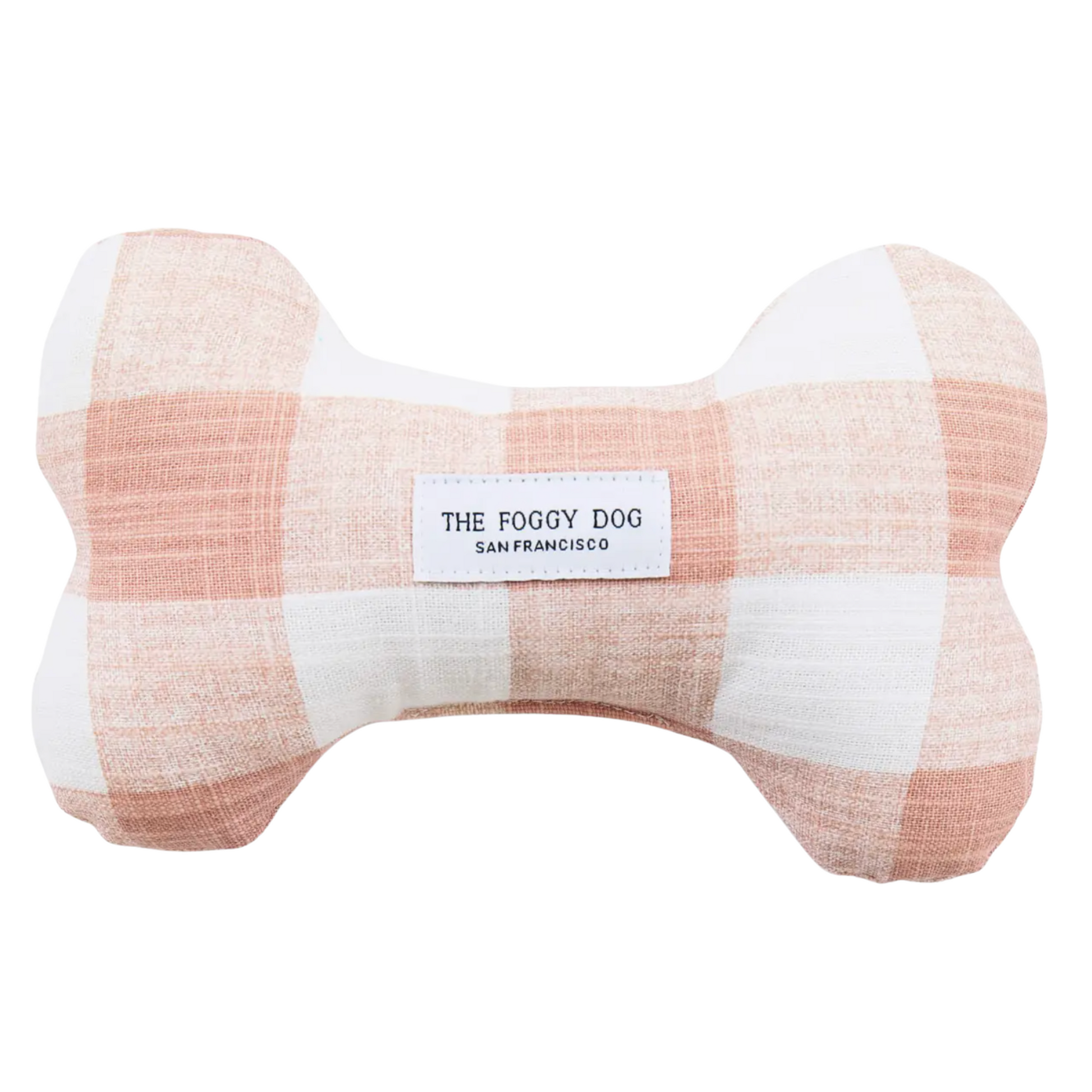 Spoil your pup with our Blush Pink Dog Bone Squeaky Toy! Made from durable upholstery-grade fabric, it's stuffed with eco-friendly filling and features a heavy-duty squeaker for endless fun. Perfect for new pups, birthdays, holidays, or just because. Approx. 4.5" x 7.5". Machine washable.