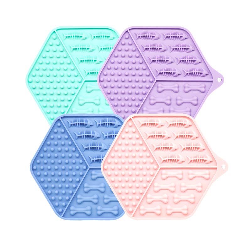Slows down eating: Dogs who eat too quickly can be at risk for digestive problems such as bloating or vomiting. A dog lick mat can help slow down your dog's eating by encouraging them to take their time licking and nibbling on the food.