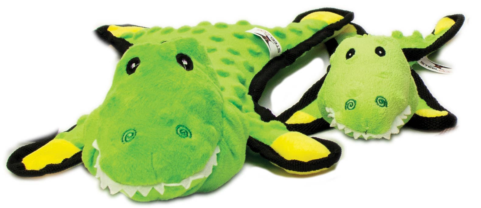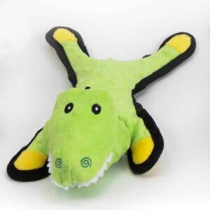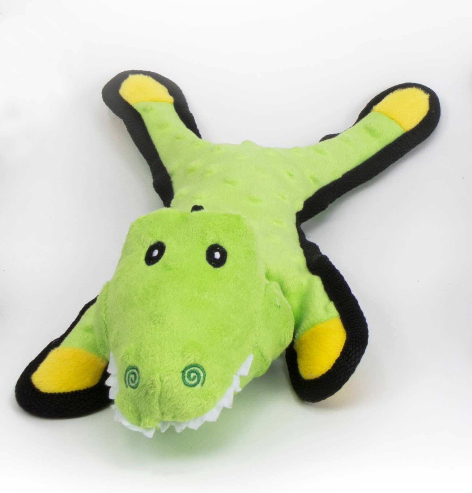 This plush Bumpy Flat Gator will be the one experiencing the bite, not the other way around! This soft gator with a tennis ball head, a rope body, crinkled paws, and squeaker, will be just the kind of fun your dog has in mind. Our bumpies have a Moderate Chew-o-Meter rating. Even if they do make it through the tough seams, more toys await—the toy that keeps on giving!