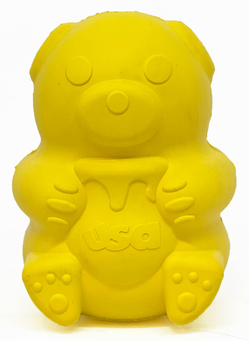 DURABLE CHEW TOY: The Honey Bear Toy is designed to withstand the abuse of most "power chewer" dogs. This product is made from durable Natural Rubber.