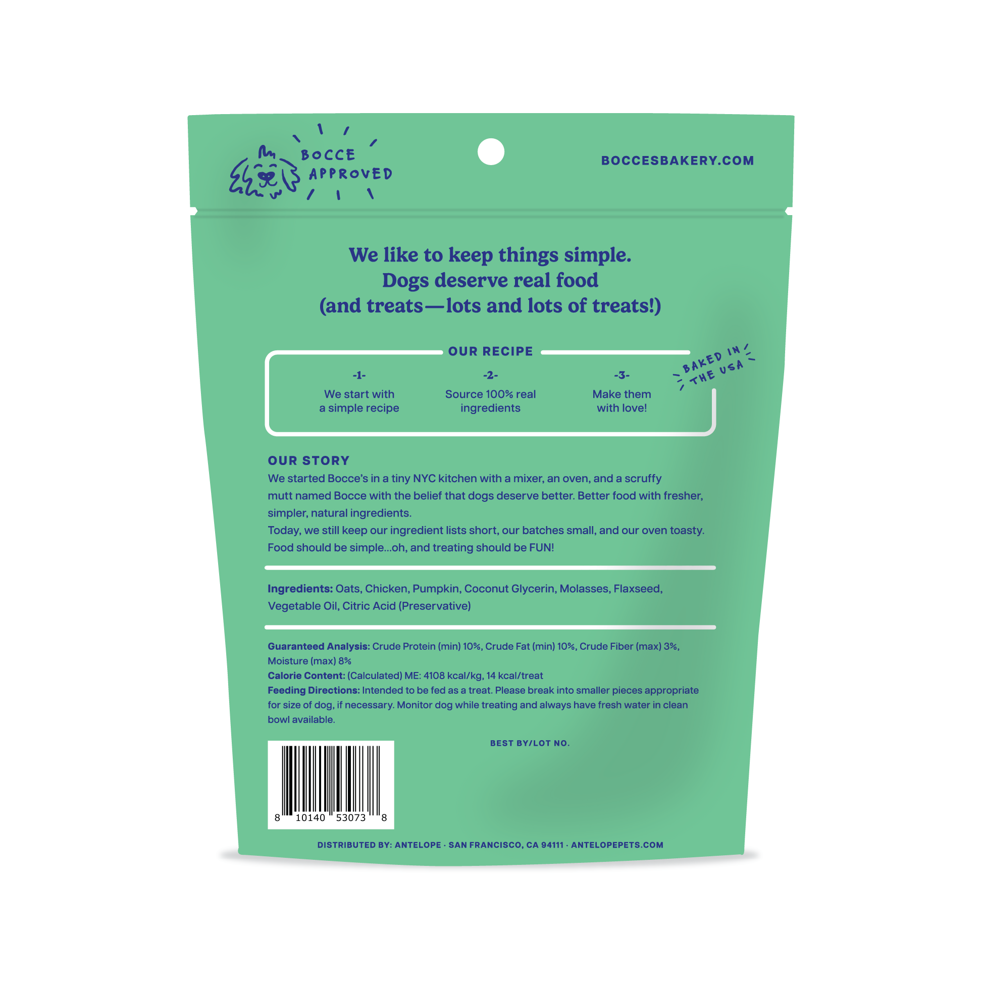 Ingredients: Oats, Chicken, Pumpkin, Coconut Glycerin, Molasses, Flaxseed, Vegetable Oil, Citric Acid
