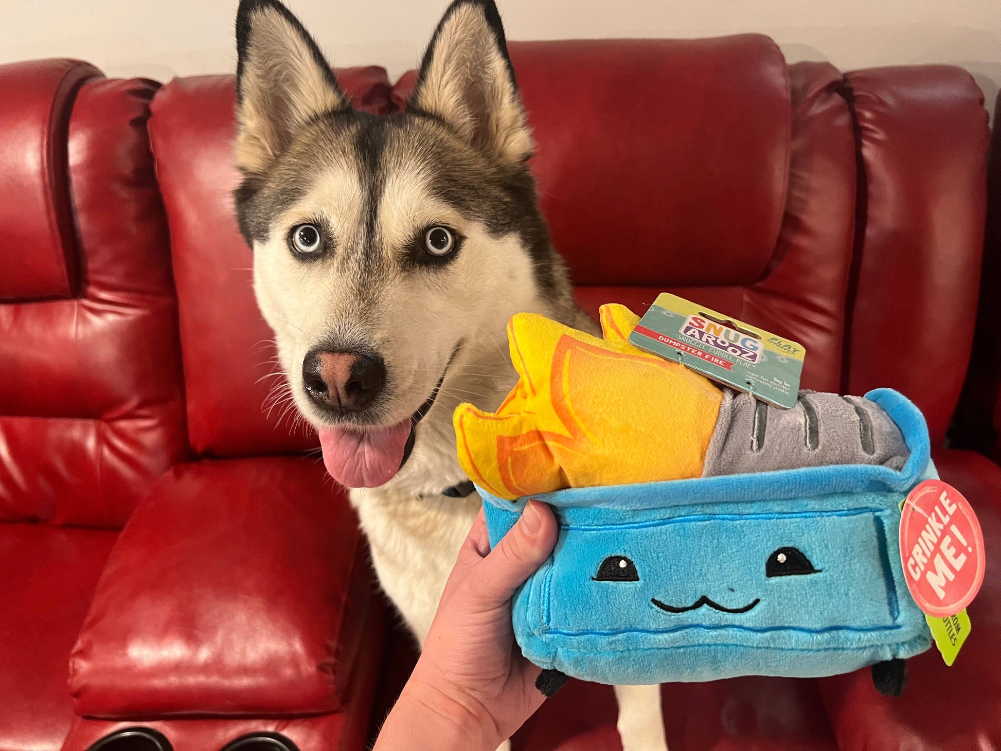 SnugArooz Dumpster Fire Plush Dog Toy 6.5"