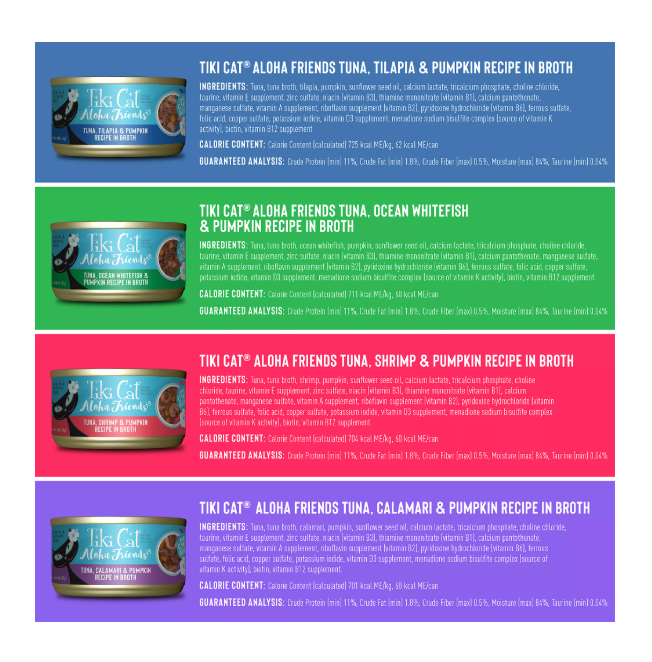 Tiki Cat® Aloha Friends™ Wet Cat Food is delicious meals with real tuna and easy–to–digest pumpkin, combined with flavorful fish or seafood.