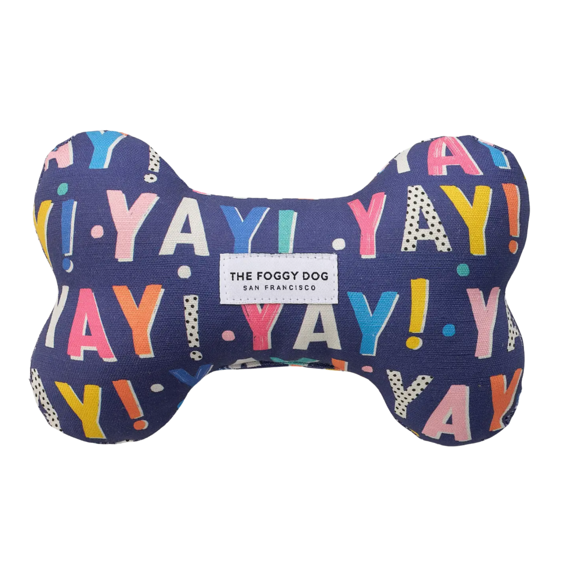 Spoil your pup with our Yay Navy Dog Bone Squeaky Toy! Made from durable upholstery-grade fabric, it's stuffed with eco-friendly filling and features a heavy-duty squeaker for endless fun. Perfect for new pups, birthdays, holidays, or just because. Approx. 4.5" x 7.5". Machine washable.